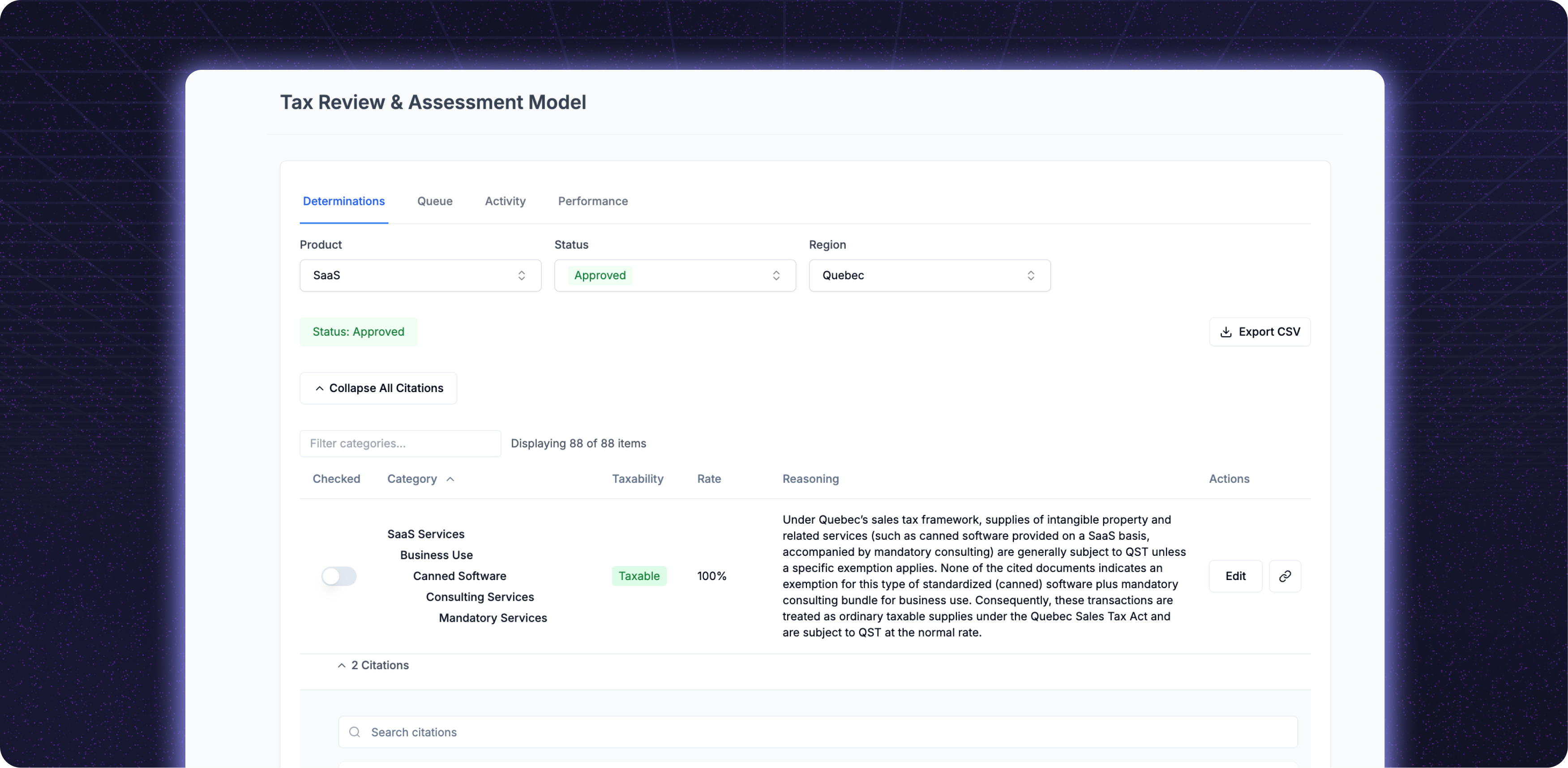 What makes TRAM unique is its ability to continuously digest and understand tax regulations across the globe and automatically apply the correct tax treatment to every transaction. Sphere’s TRAM model eliminates the guesswork, manual research, and people-hours needed to make these decisions.