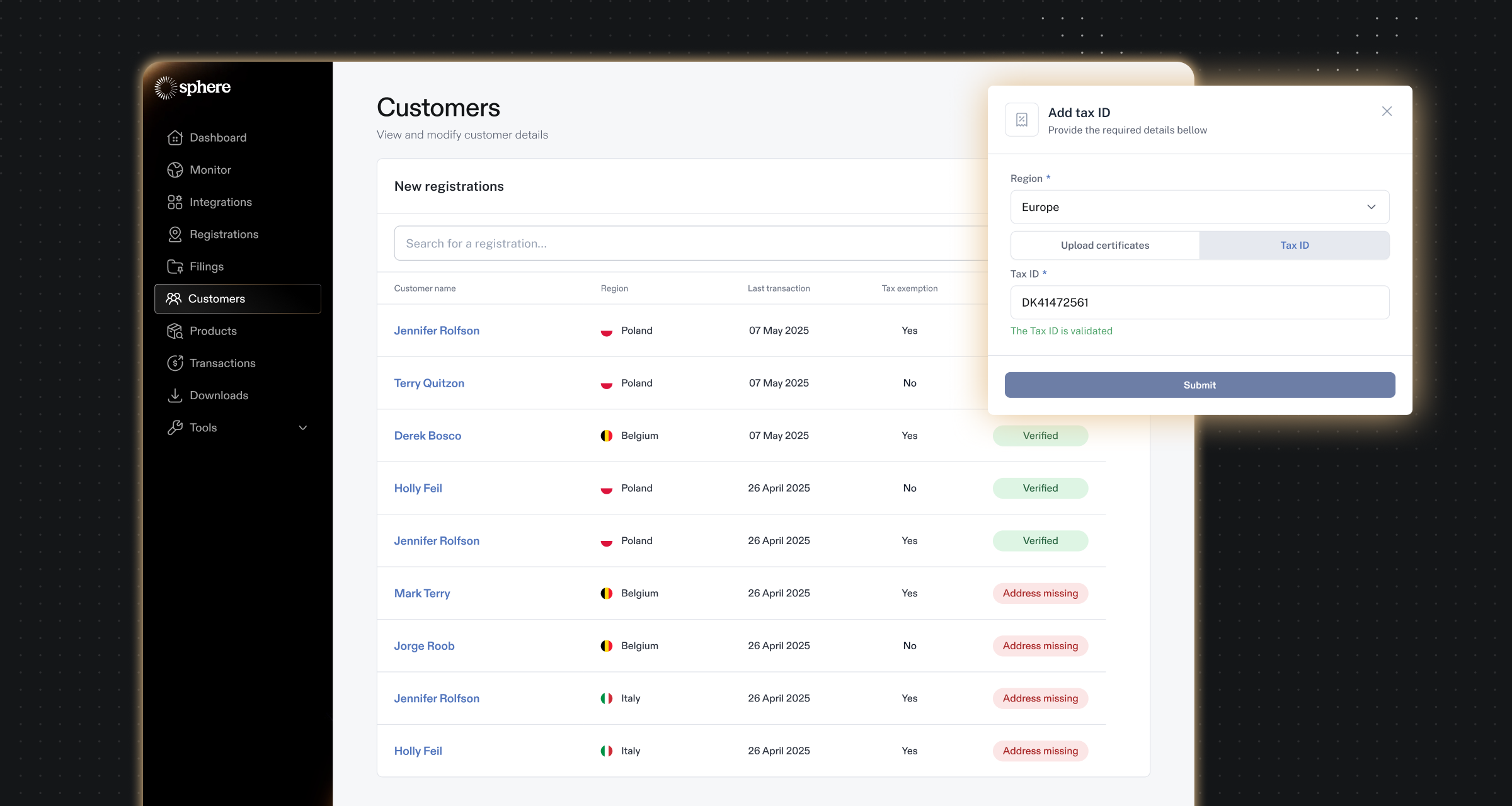 Sphere is launching native e-invoicing functionality in Q2 2026, making it one of the only platforms that combines tax compliance and e-invoicing in one system.