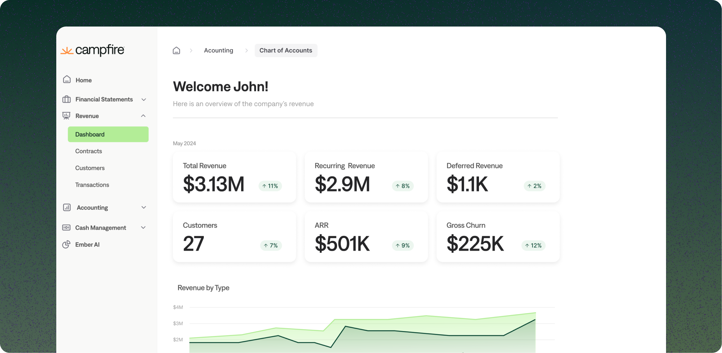 Growing companies at the $2mm-$20mm revenue stage may upgrade to something like Rillet or Campfire. These tools were created with the growth state in mind and are priced to scale. Plus, their modern dashboards and other features make them easy for smaller finance teams to implement and use.