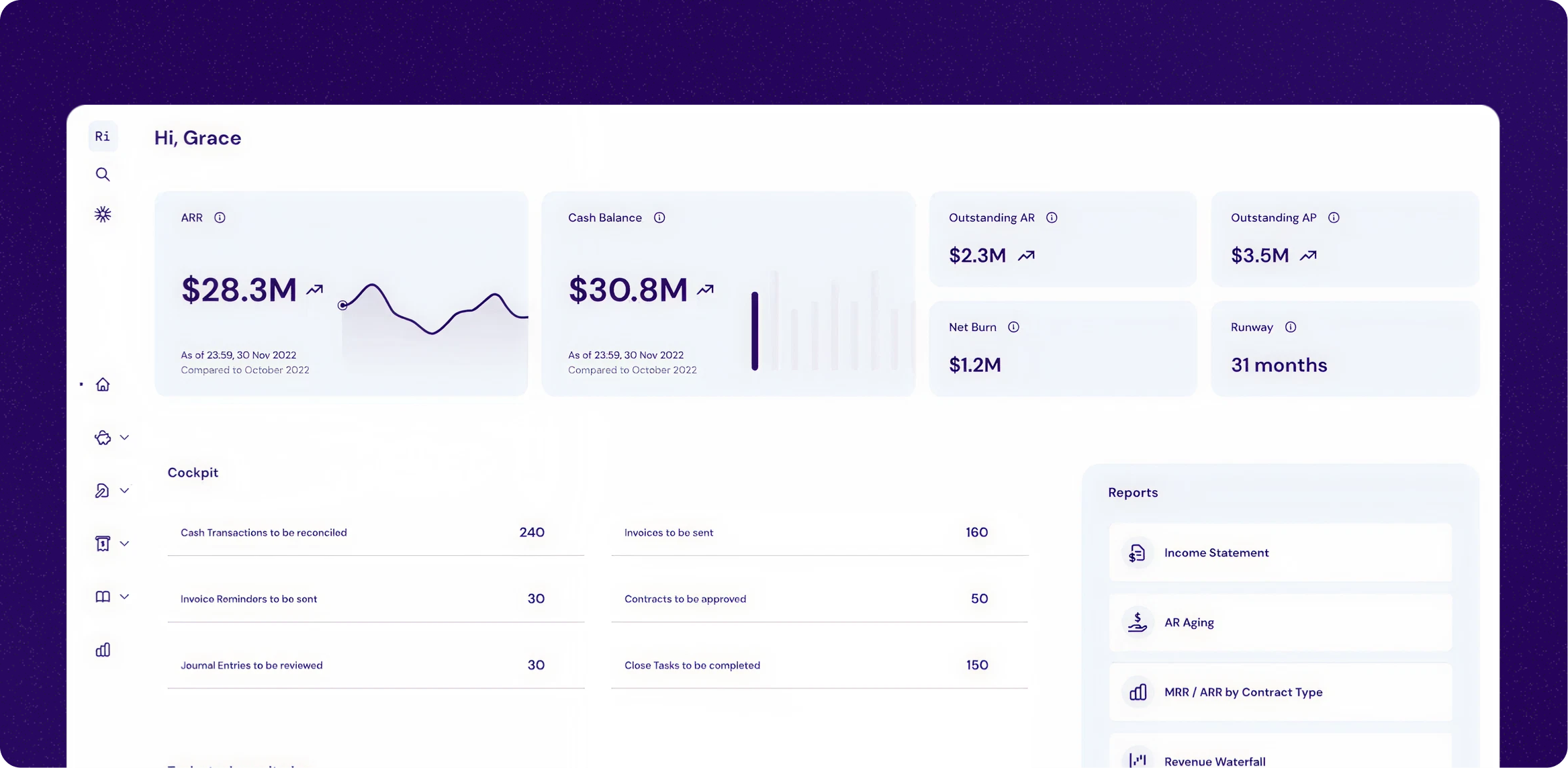 - Real-time financial dashboards with instant access to key metrics