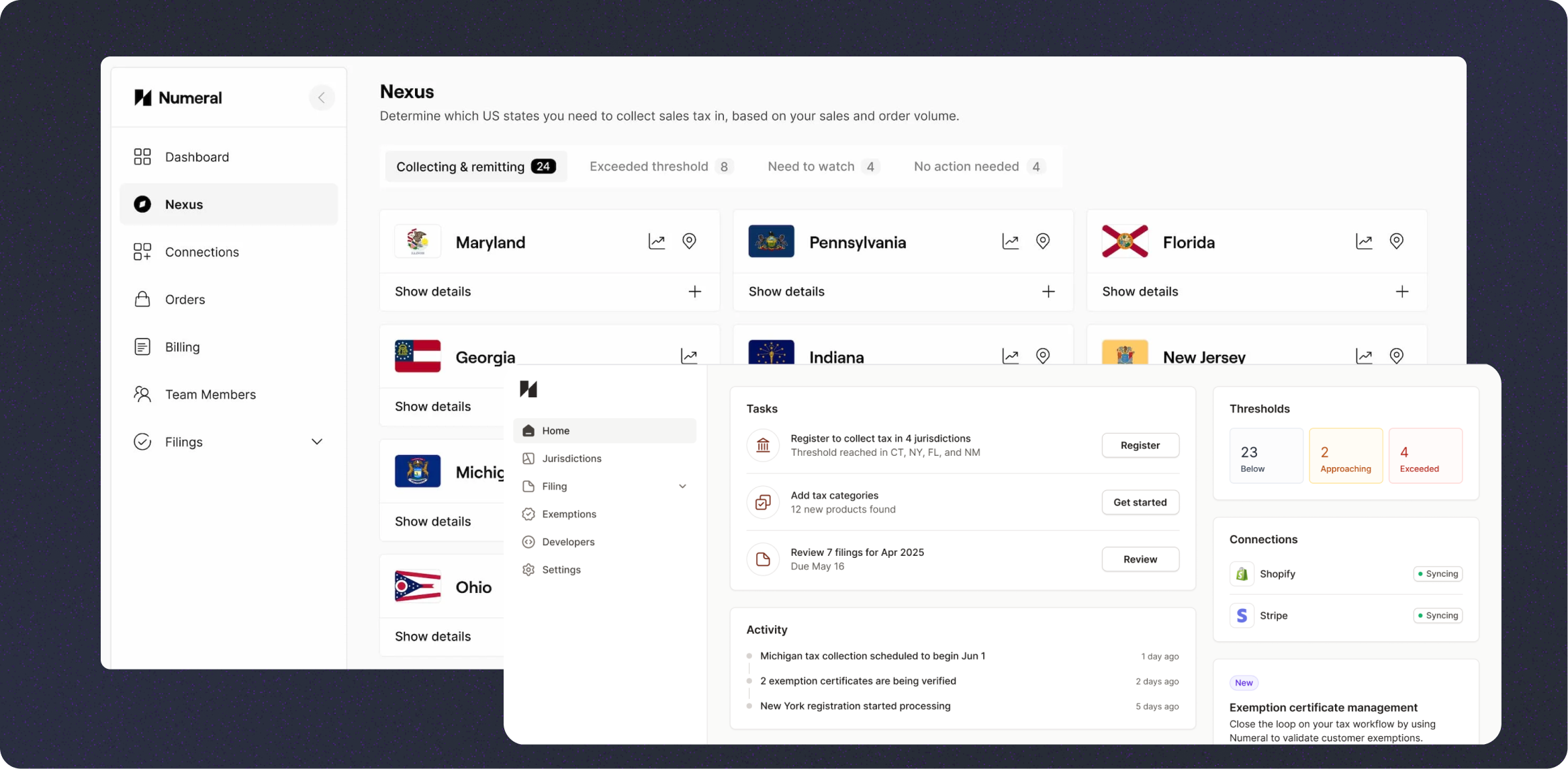 Numeral is another newer player focused on making sales tax simpler. The platform primarily targets e-commerce businesses.