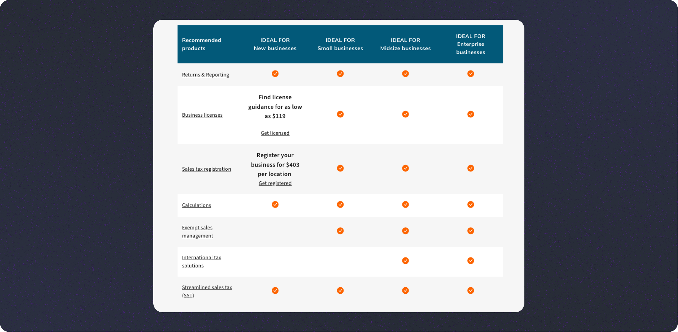 - Companies with in-house tax teams can manage sales tax complexity. They know which modules they need and have the in-house resources to choose the right pricing brackets.