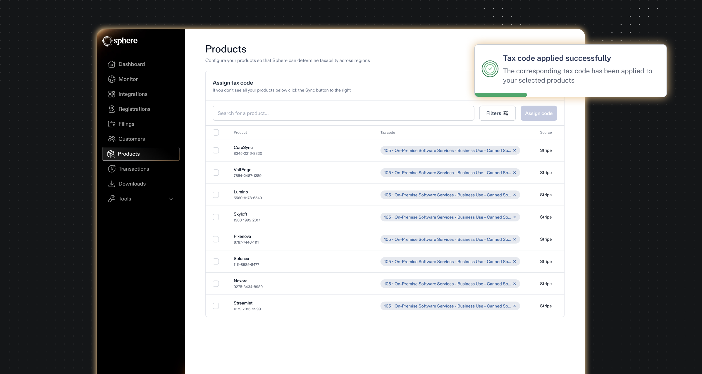 When it's time to file, Sphere calculates your output VAT, applies eligible input VAT deductions, determines net VAT liability, and prepares and submits the return. This covers both standard VAT registrations and jurisdictions where Sphere has direct integrations with tax authorities.