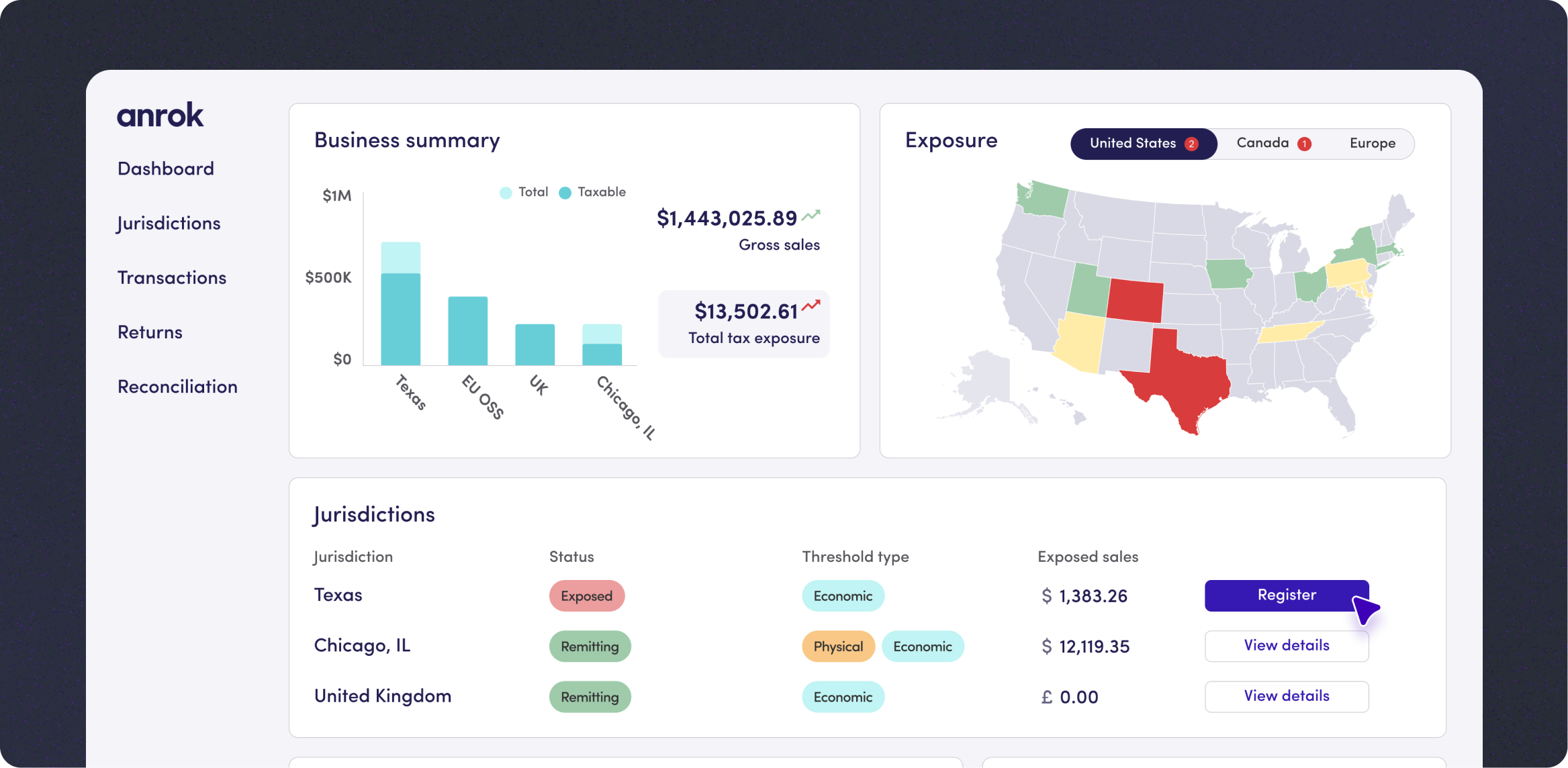 - Unified reporting: A single dashboard for all jurisdictions and tax types