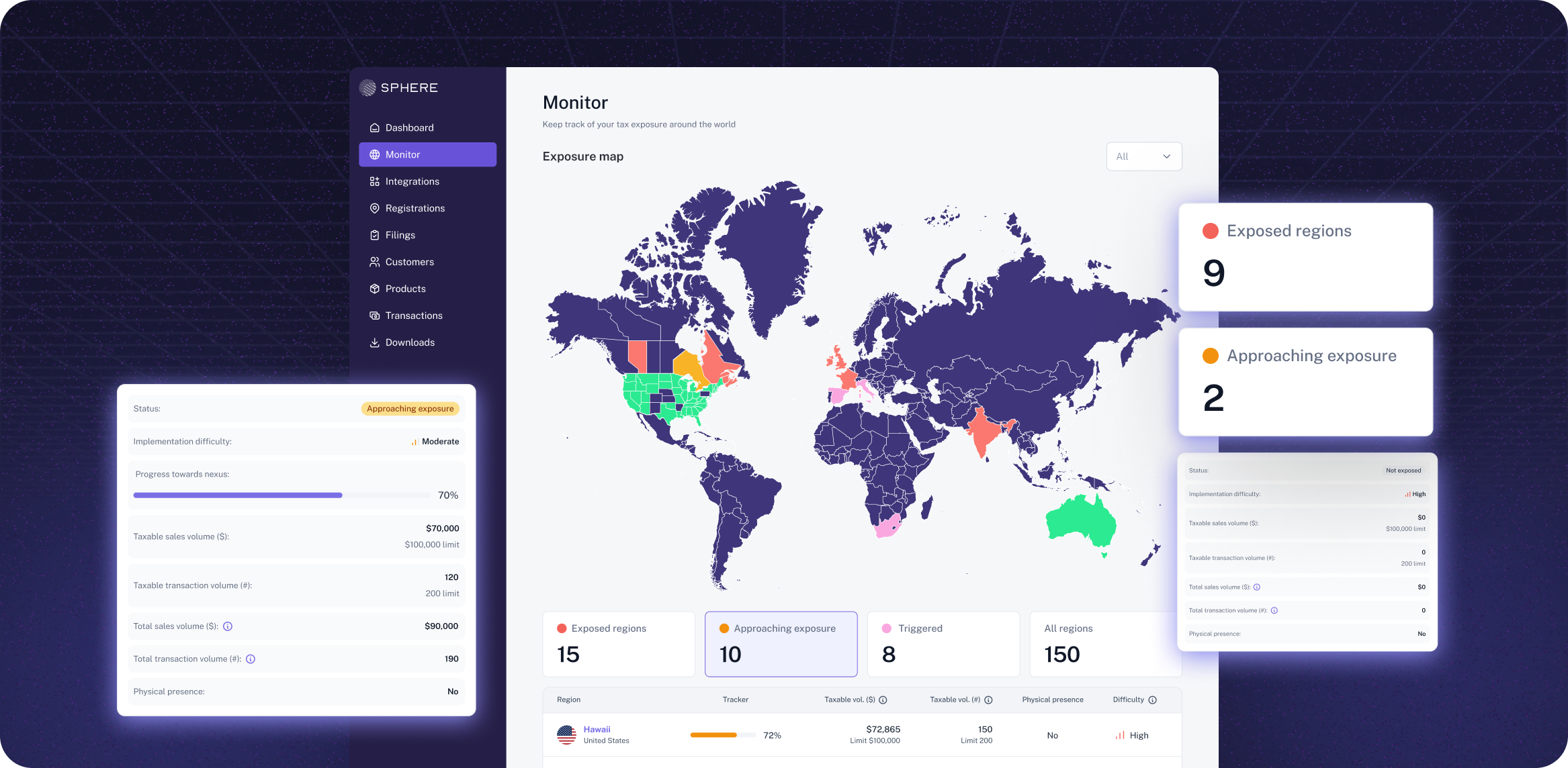 Sphere is AI-powered global tax compliance software built for SaaS and AI companies. The platform handles liability monitoring, registration, calculation, filing, and remittance across sales tax, VAT, and GST jurisdictions worldwide.