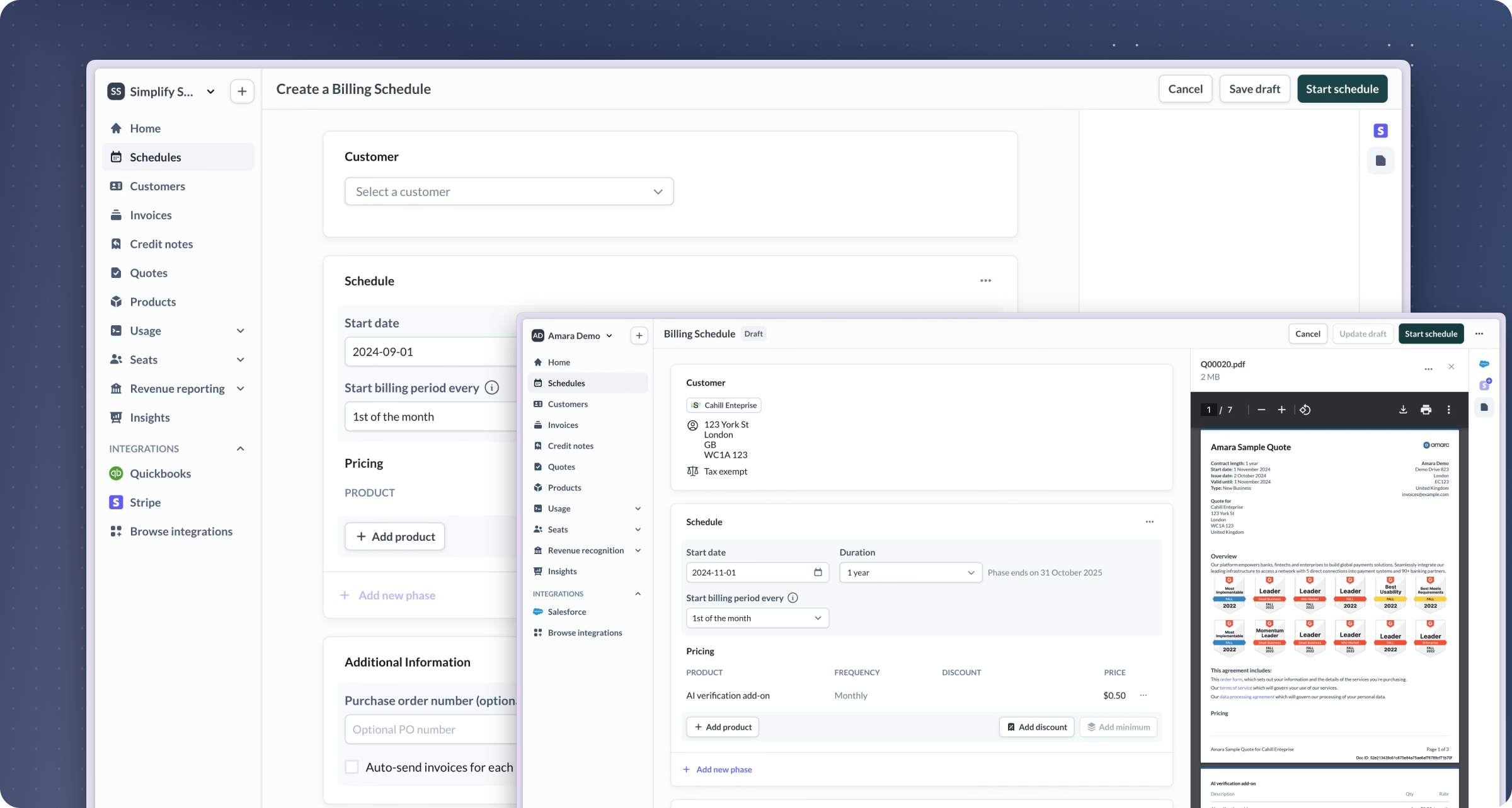 The platform's flexibility shines in handling contract modifications, mid-cycle changes, and complex approval workflows. Unlike rigid billing systems that force you into predefined models, Sequence adapts to however you sell and bill. Finance teams love the real-time reporting and audit trails, while sales appreciates the speed of quote generation.